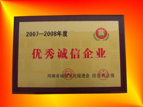 • “2007-2008年度河南省優(yōu)秀誠(chéng)信企業(yè)” “2007-2008年度河南省優(yōu)秀誠(chéng)信企業(yè)”
