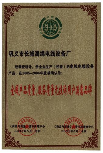 • “全國(guó)產(chǎn)品質(zhì)量、服務(wù)質(zhì)量無(wú)投訴用戶滿意品牌”稱號(hào) “全國(guó)產(chǎn)品質(zhì)量、服務(wù)質(zhì)量無(wú)投訴用戶滿意品牌”稱號(hào)