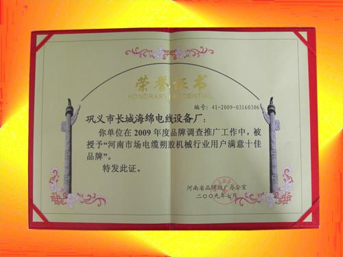 河南市場電纜塑料機(jī)械行業(yè)用戶滿意十佳品牌