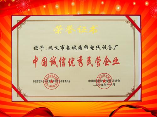 中國誠信優(yōu)秀民營企業(yè)