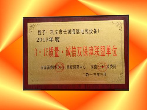 誠信3.15產(chǎn)品質(zhì)量雙優(yōu)示范單位